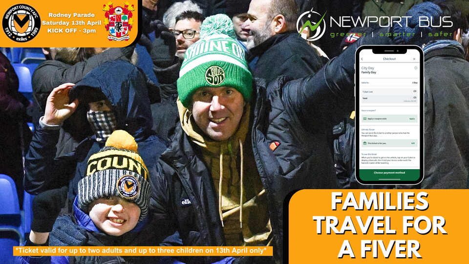 As proud sponsors of Newport County for the 2023/24 season, Newport Bus is supporting County’s ‘Kids for a Quid’ initiative, available on under 14’s tickets, on Saturday 13th April by selling £5 Family Day Tickets for families of up to two adults and three children.
