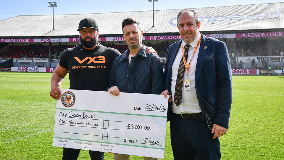 Newport County is pleased to announce it has donated £8,000 to the club's former winger Jason Bowen to help with his treatment for Motor Neurone Disease (MND).