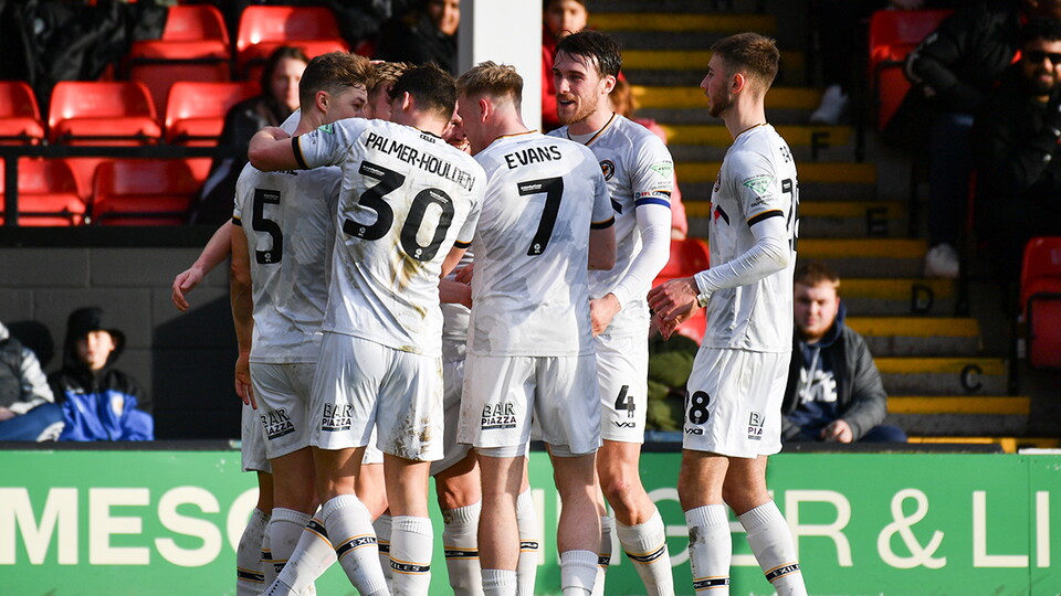 Things got better for the Exiles in the 13th minute as Evans, the club’s leading goalscorer doubled his side’s lead. Palmer-Houlden fed the ball into the path of Evans who showed incredible perseverance, flicking the ball over his defender before guiding a tremendous effort into the far corner.