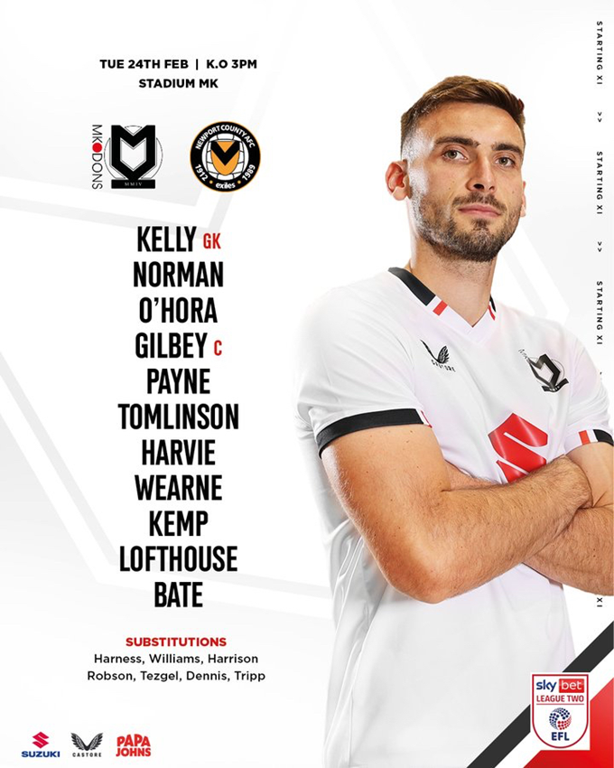 Here is your team news ahead of this afternoon’s Sky Bet League Two fixture against MK Dons.
