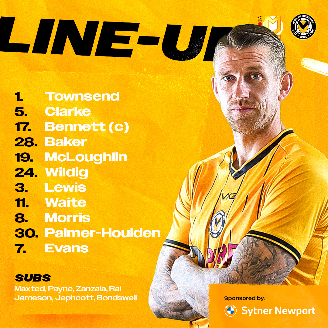 Newport County: Townsend, Bennett (C) Clarke, Baker, Lewis, McLoughlin, Wildig, Morris, Waite, Evans, Palmer-Houlden.