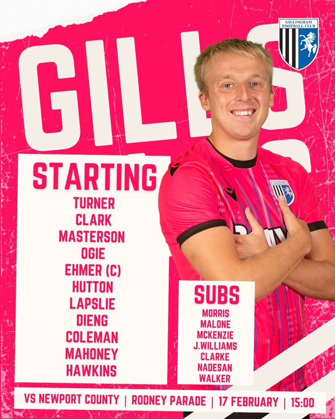 Here is your team news ahead of this afternoon’s Sky Bet League Two fixture against Gillingham.