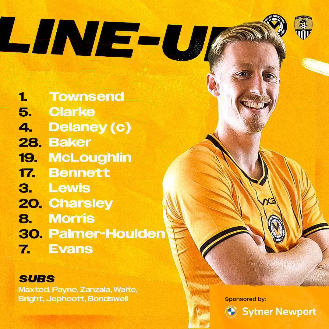 Newport County: Townsend, Delaney (C), Clarke, Baker, Lewis, McLoughlin, Bennett, Morris, Charsley, Evans, Palmer-Houlden.
