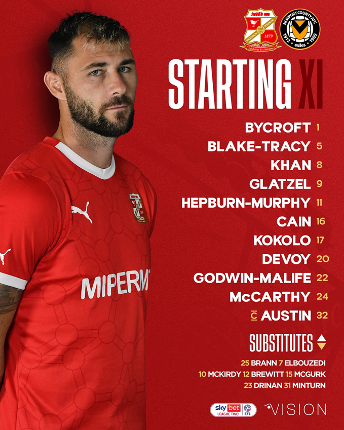 Here is your team news ahead of this afternoon’s Sky Bet League Two fixture against Swindon Town.