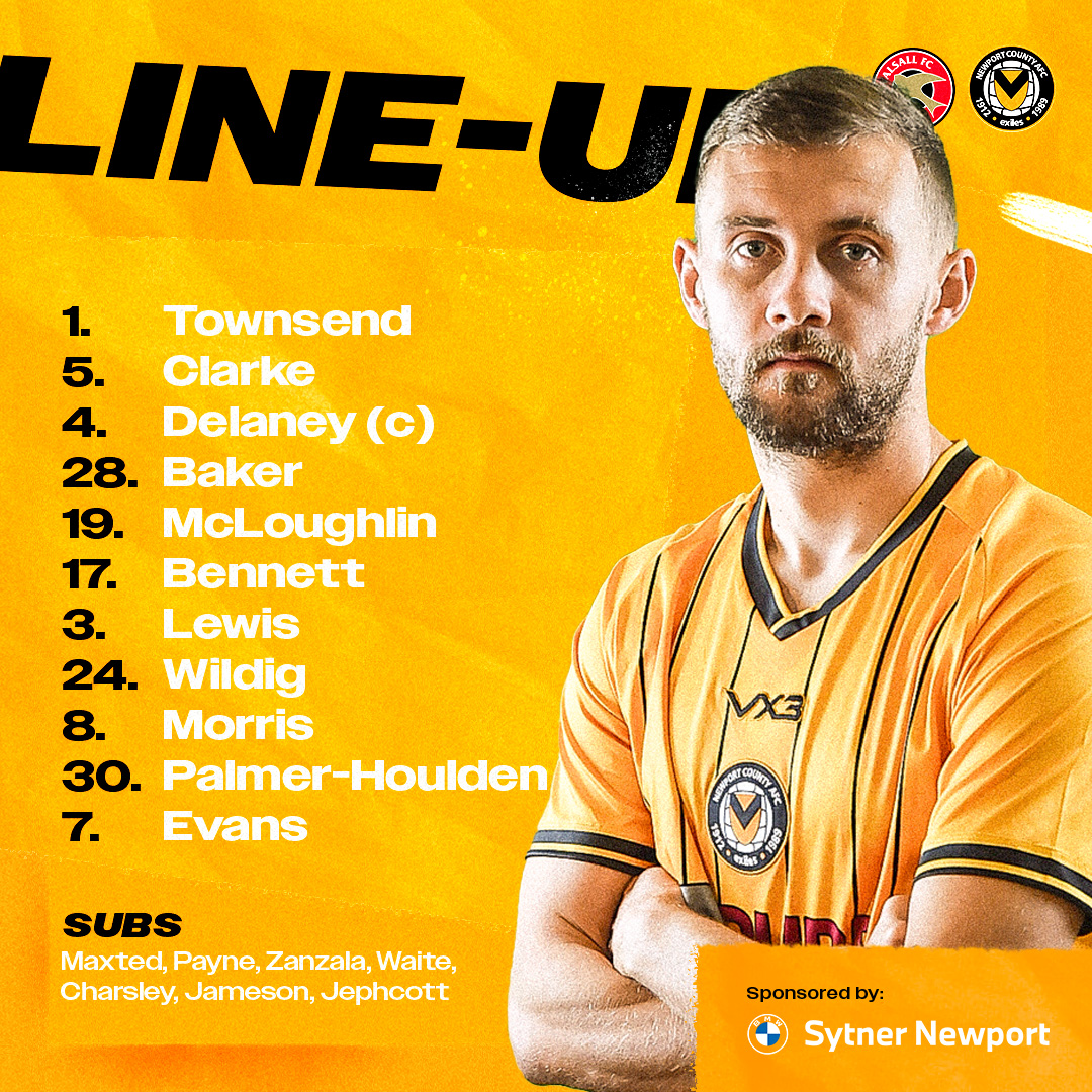 Newport County: Townsend, Delaney (C), Clarke, Baker, Lewis, McLoughlin, Bennett, Morris, Wildig, Evans, Palmer-Houlden.