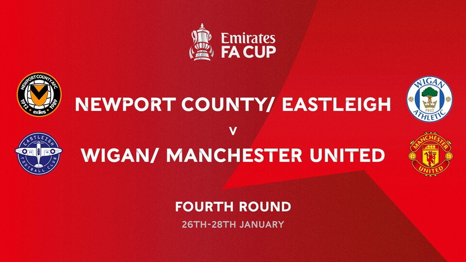 Newport County/ Eastleigh have been drawn to face Wigan Athletic/ Manchester United in the fourth round of the FA Cup.