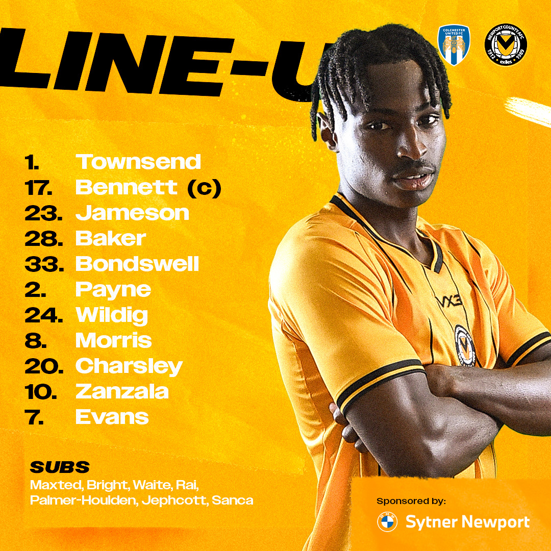 Newport County: Townsend, Jameson, Bennett (C), Baker, Payne, Bondswell, Wildig, Morris, Charsley, Zanzala, Evans.
