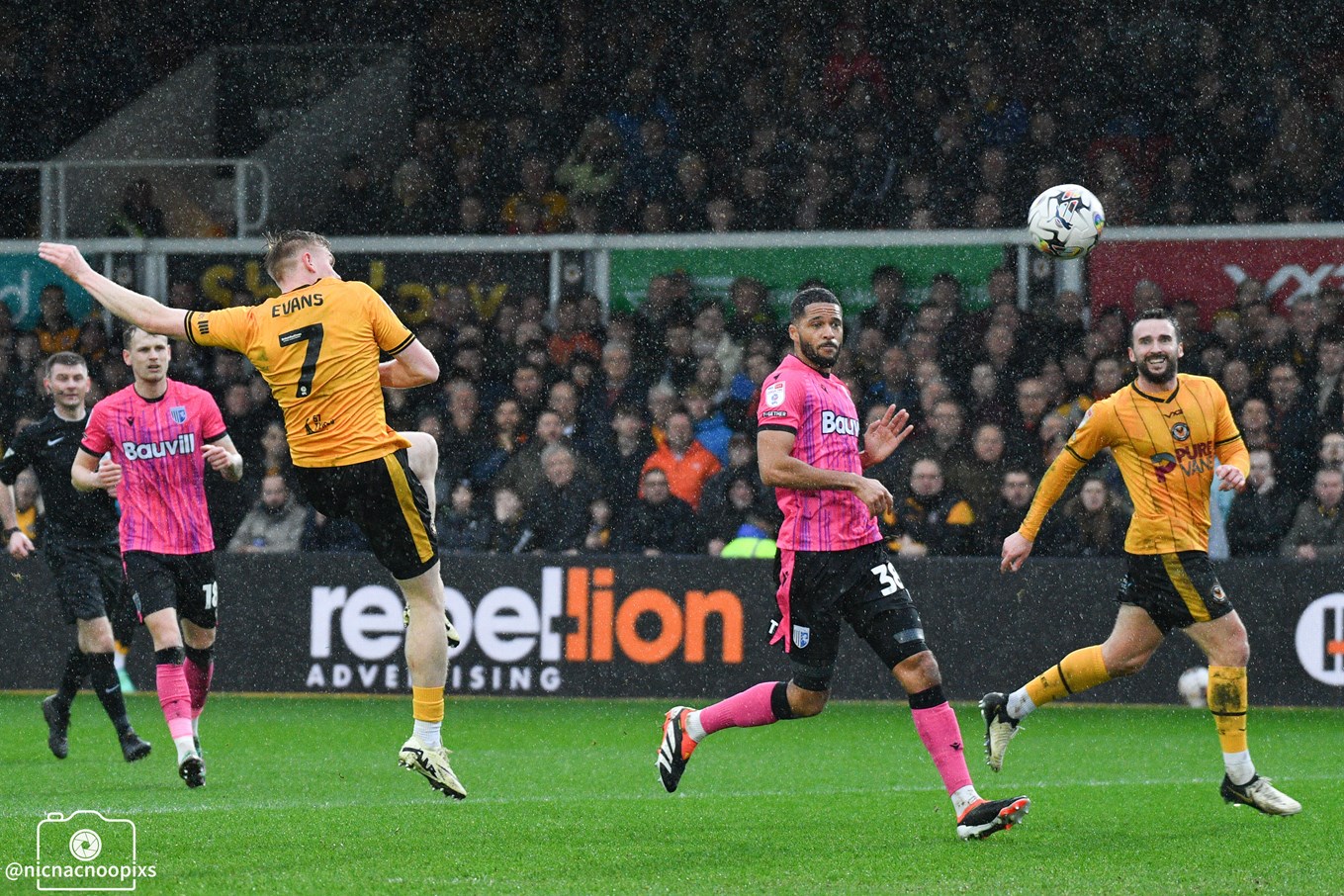 Newport's seven game unbeaten run would unfortunately come to an end against Notts County, despite the result though, Evans found the net from the penalty spot late into the game to ensure his goalcoring run continued to four in four.