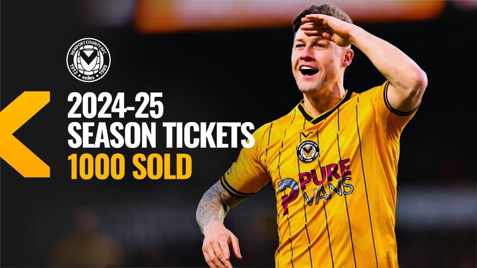 Newport County is pleased to announce that the club has now sold over 1000 season tickets for the 2024-25 season.