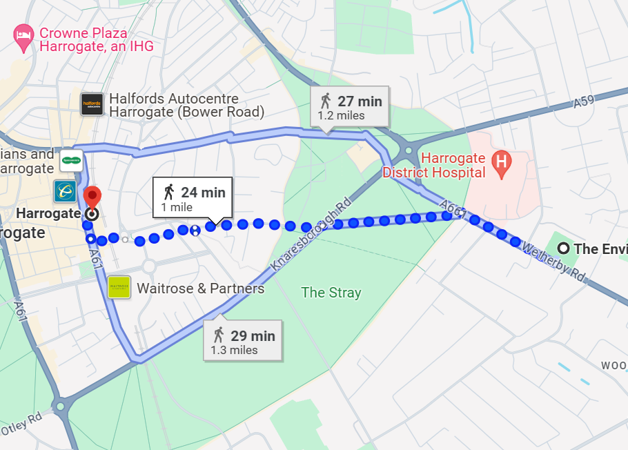 How far is the train station to Harrogate Town?
